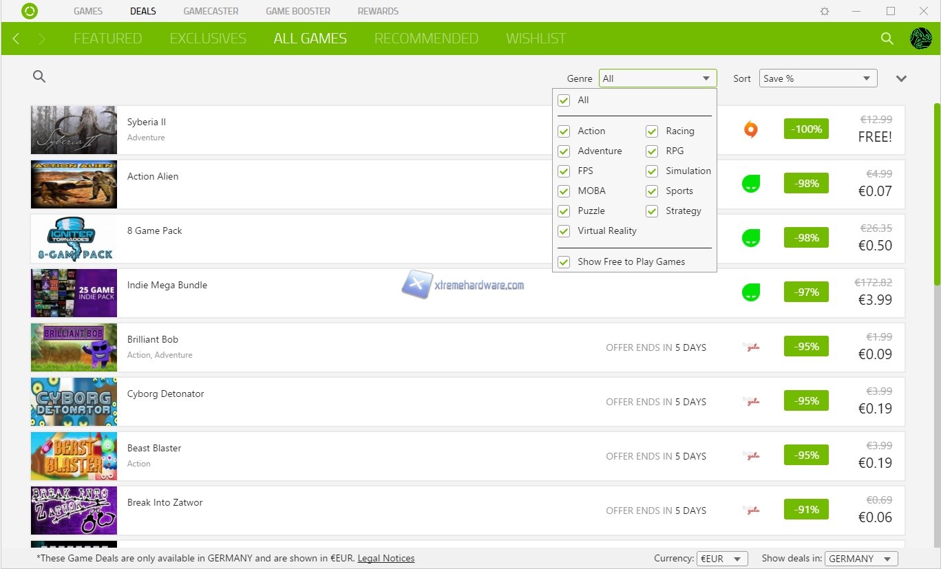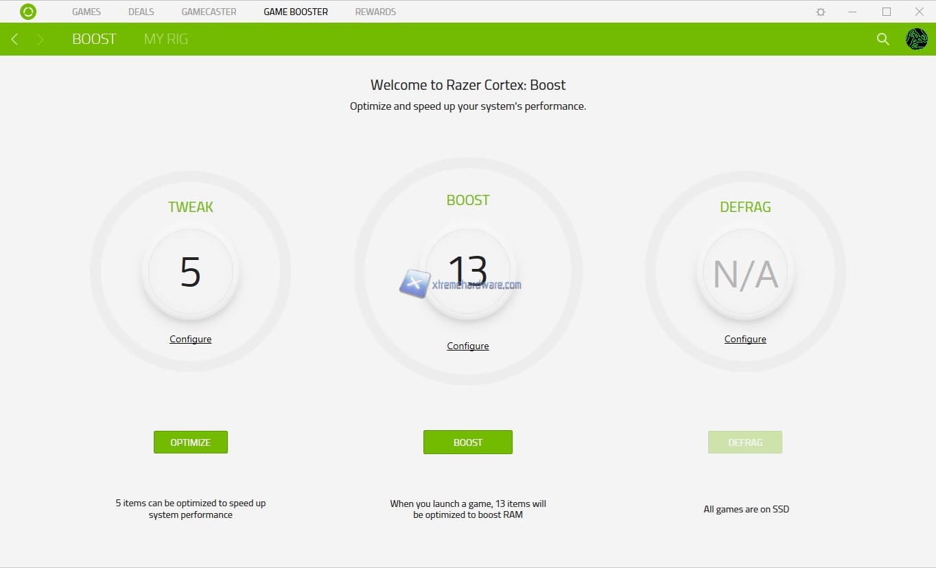 Razer Cortex è un software gratuito (per le maggiori funzioni base) che mette a disposizione dei videogiocatori un’ampia gamma di strumenti di ottimizzazione delle prestazioni del PC e di ricerca delle migliori offerte sui titoli del momento. Razer Cortex offre un’interfaccia davvero semplice ed immediata. Questa si basa su cinque Menù principali che sono ‘’Games’’, ‘’Deals’’, ’’GameCaster’’, ‘’Game Booster’’ e ‘’Rewards’’.